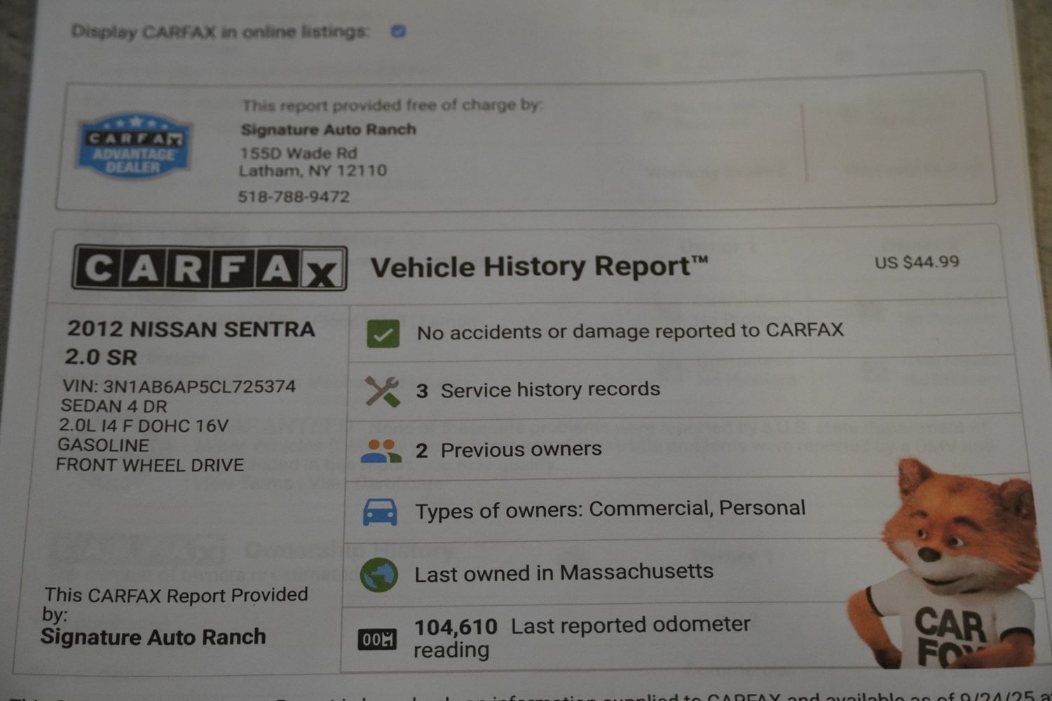 2012 NISSAN SENTRA 2.0 SR SEDAN AUTOMATIC 34MPG LOADED NO RUST CLEAN CARFAX SERVICED ONLY 105K!