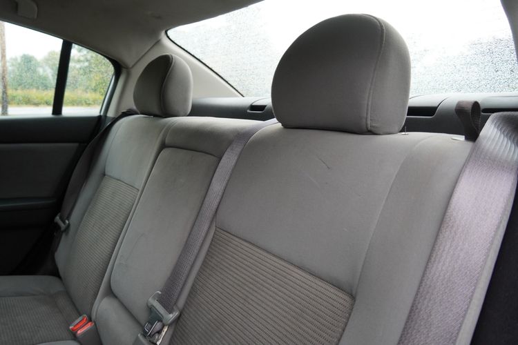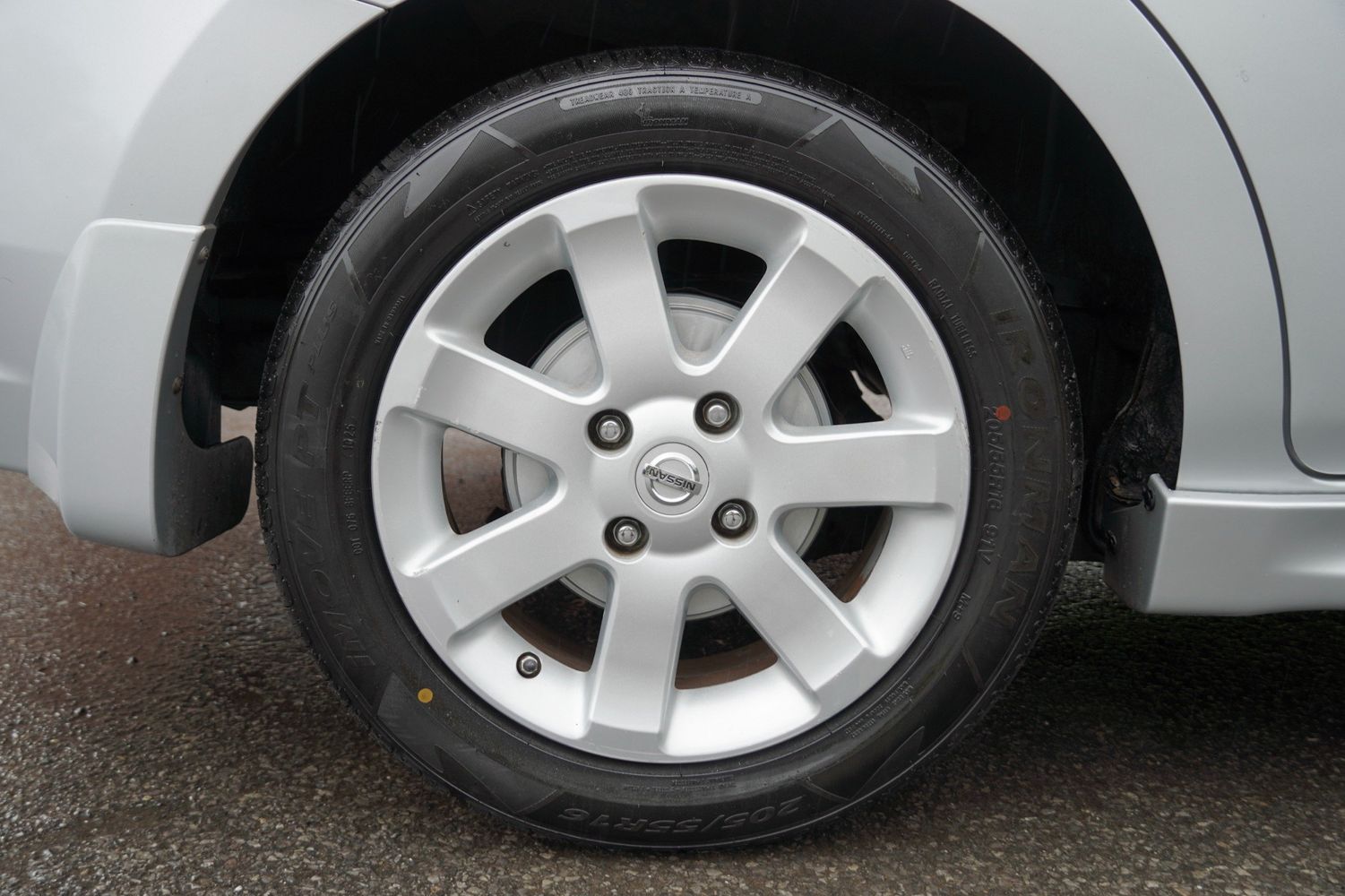 The exterior is in great shape on this Sentra. The "Brilliant Silver" paint shines very nicely. There aren't any unsightly dents, dings, or scratches to mention, other than a few scuffs on the bumpers (see photos). There is no rust on the body, bottoms of the doors, etc. The undercarriage is very clean. The 16" alloy wheels are in excellent condition, wrapped in Brand New All Season tires.