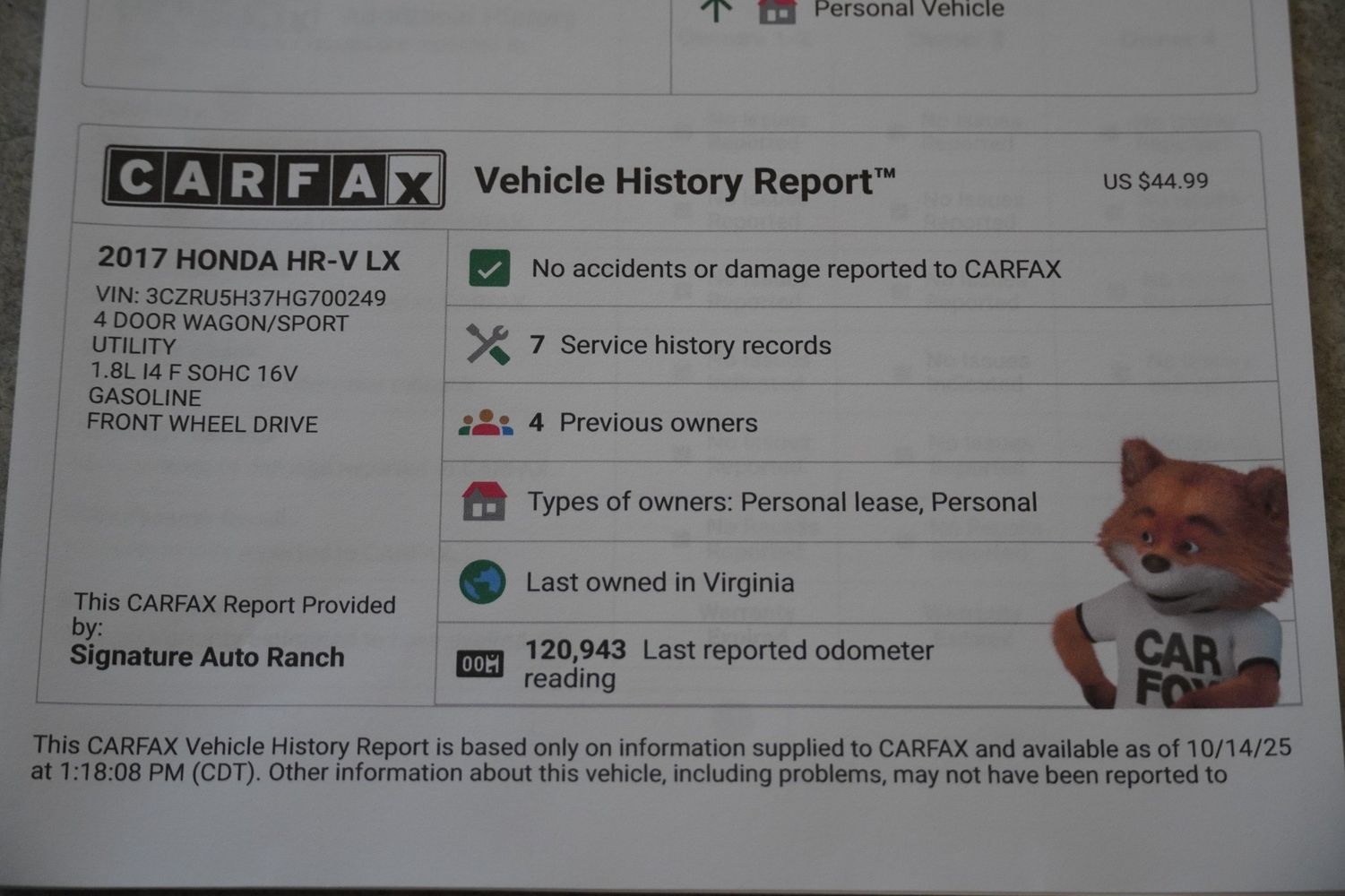 2017 HONDA HR-V LX FWD BACKUP CAMERA CLEAN CARFAX NICE SHAPE WELL PRICED!