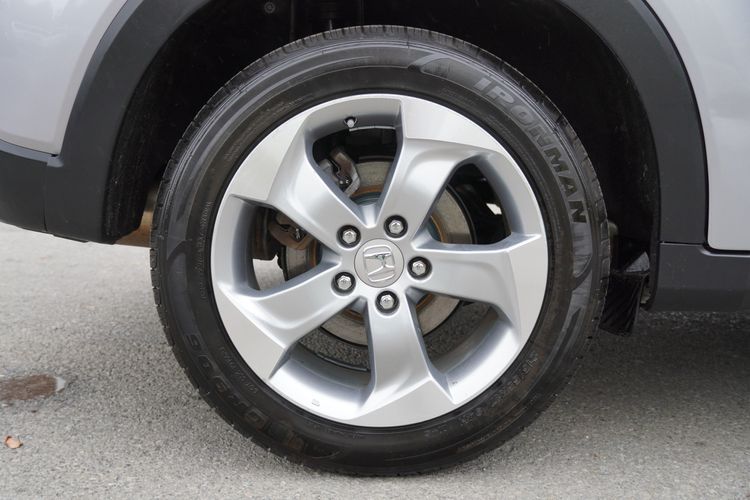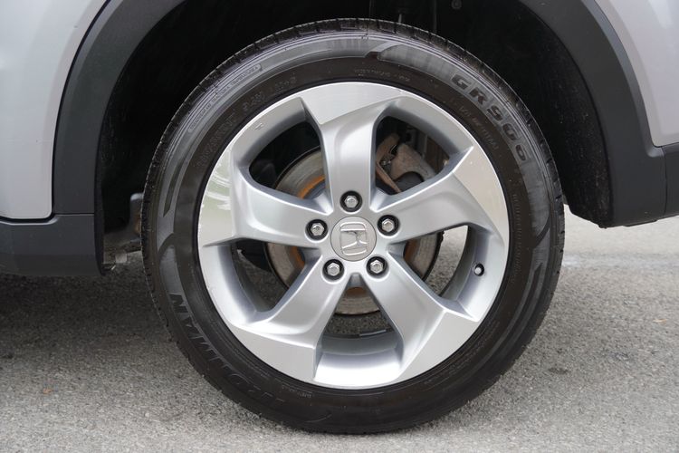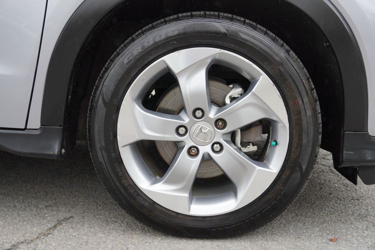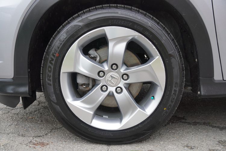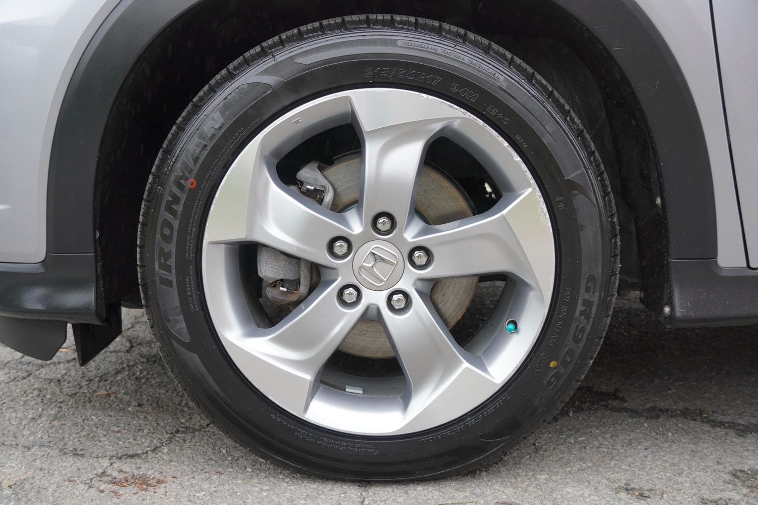 The exterior is in beautiful shape on this HR-V. The "Lunar Silver Metallic" paint shines like new and is original. There are a few marks here and there (see photos), but otherwise it's very nice. There is no rust on the body, bottoms of the doors, etc. The undercarriage is immaculate with no rust. The 17" alloy wheels are in good shape, wrapped in matching tires with around 70% tread remaining.
